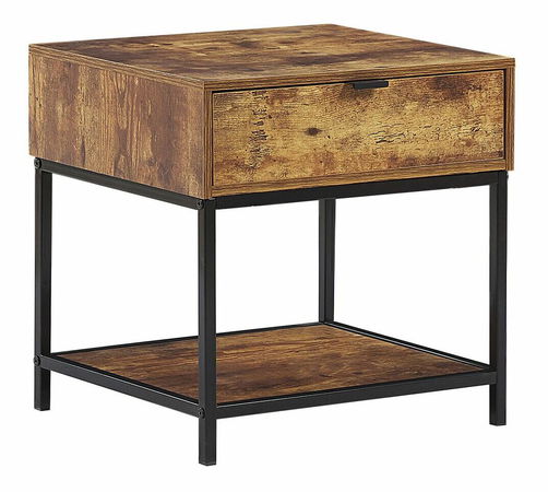 Vylepšete vzhled vašeho obývacího pokoje pomocí tohoto stolku v industriálním stylu. Je vybaven prostornou zásuvkou a poličkou a umožňuje vám uložit různé věci, od starých časopisů až po televizní dálkové ovladače Design, který přitahuje pozornost díky stolové desce z tmavého dřeva v kombinaci s černým rámem vypadá nejlépe v moderních