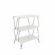Příruční stolek - Lazira je praktickým a stylovým doplňkem pro váš domov. S výškou 75 cm, šířkou 48 cm a hloubkou 31 cm je ideální volbou pro místnosti s omezeným prostorem. Tento bílý stolek je vyroben z kvalitního materiálu, který je odolný a snadno se udržuje. S jednoduchým designem a moderním vzhledem se stane skvělým místem pro umístění vašeho oblíbeného nápoje, knihy nebo ovladačů. Ať už potřebujete místo k odložení věcí vedle pohovky, postele nebo ve vaší kanceláři, stolek Lazira je pro vás ideálním řešením.