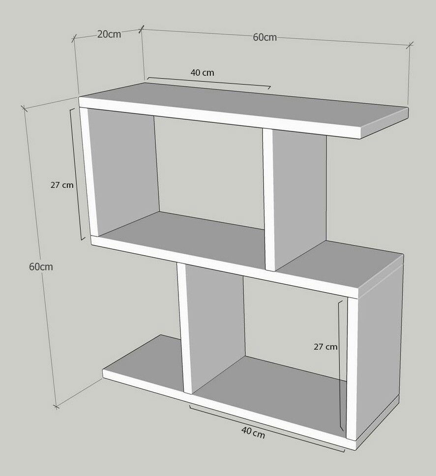 tloušťka: 18 mm, šířka: 60 cm, výška: 60 cm, hloubka: 20 cm, (2 kusy) výška police: 27 cm