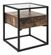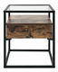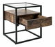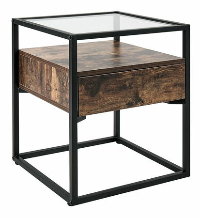 Zkrášlete svůj domov tímto elegantním stolkem v odstínu tmavého dřeva. Je skvělým doplňkem do obývacího pokoje nebo ložnice a nabízí praktický úložný prostor v industriálním stylu. Stolek je navržen se zásuvkou, která je ideální pro uložení všech drobností, a deskou z tvrzeného skla. Kovový rám zajišťuje stabilitu a doplňuje jednoduchý design stolku.