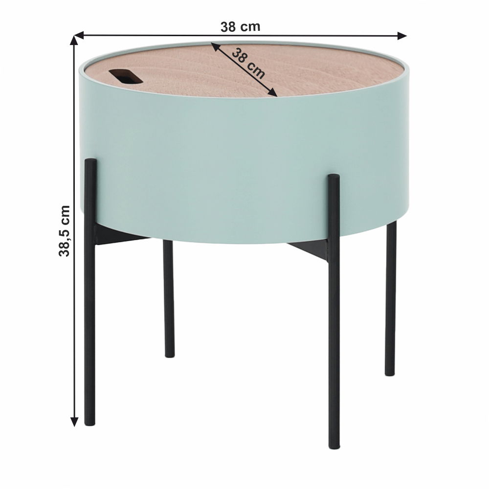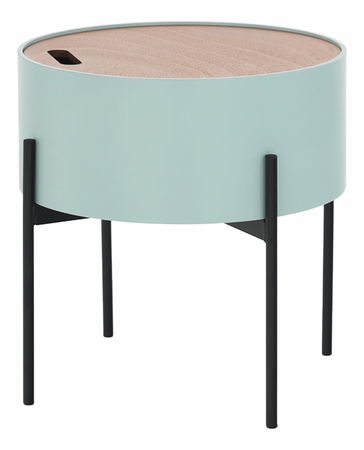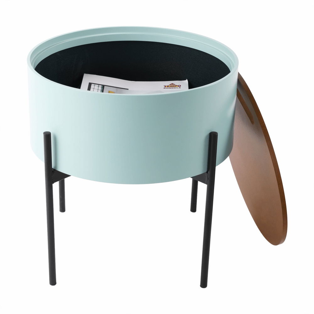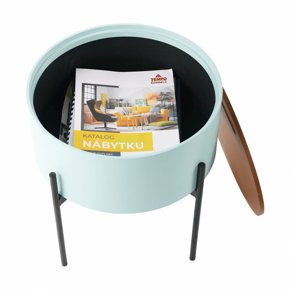 Pokud přemýšlíte nad koupí příručního stolku s moderním zpracováním a specifickým designem, vyberte si stolek Moris. Disponuje úložným prostorem pod odnímatelným víkem, do kterého uložíte cokoli. Vyrobený z MDF a kovu. Kombinace černé konstrukce a mentolové barvy vytváří originální design, který přistane každé domácnosti.