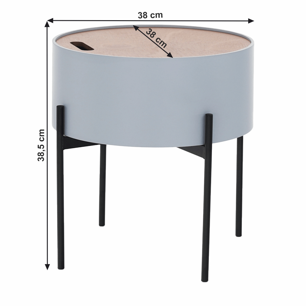 Pokud přemýšlíte nad koupí příručního stolku s moderním zpracováním a specifickým designem, vyberte si stolek Moris. Disponuje úložným prostorem pod odnímatelným víkem, do kterého uložíte cokoli. Vyrobený z MDF a kovu. Kombinace černé konstrukce a šedé barvy vytváří originální design, který přistane každé domácnosti.
