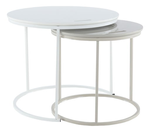 Sada dvou kompaktních příručních stolků, které pěkně zapadají do sebe. Menší stolek jednoduše zasunete pod větší a ušetříte tak prostor. Pomohou Vám během návštěv, pokud budete potřebovat odložit servis s čajem a talíře s občerstvením.