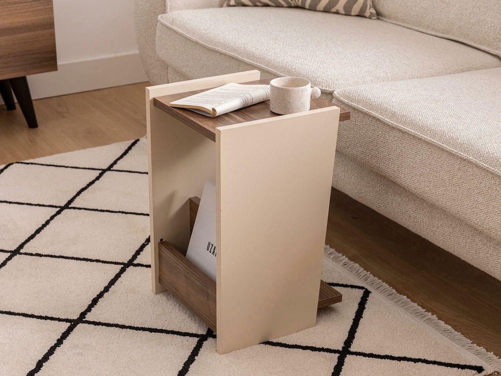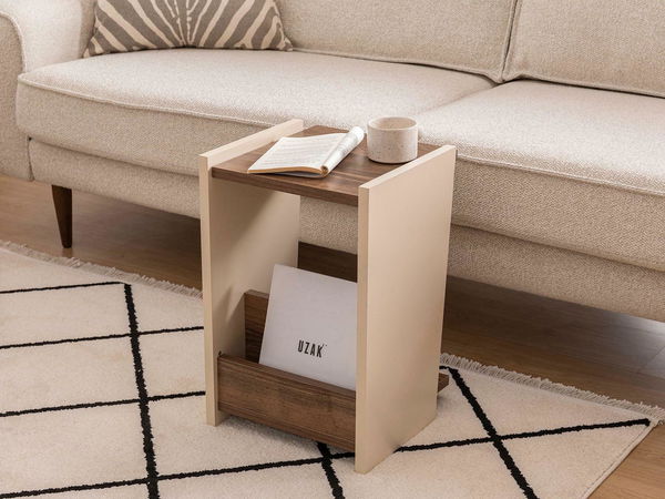Příruční stolek Pitudu 3 (ořech + béžová)