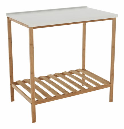 Zařizujete si novou koupelnu a potřebujete využít každý centimetr? Je vaším snem, aby se nesla ve vzdušném, lehkém a jedinečném stylu? Představujeme vám sektorovou sestavu Salionu. Nabízí spoustu komponentů pro vytvoření originální koupelny. Vyrobeno z lakovaného bambusu v přírodní barvě. Jednoduše kombinovatelné prvky vytvoří ve vaší koupelně nepopsatelnou atmosféru a zanechají dokonalý dojem. Jedním z komponentů je stolek Saliona Typ 5. Nabízí úložný prostor v podobě police. Vrchní plát je z MDF s vyvýšenou zadní stranou, která nahrazuje zábranu proti pádům předmětů za stůl.