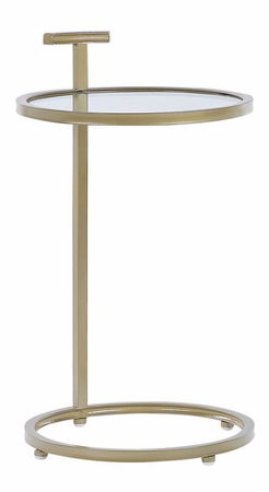 Tento odkládací stolek kombinuje vlastnosti několika stylů. Jeho minimalistický design sestává z podstavce, stojanu a stolové desky a zlaté barevné provedení s prvky z tvrzeného skla mu propůjčují elegantní vzhled. Odolné materiály zaručují dlouhou životnost a odolnost a plastové kryty nohy chrání vaši podlahu před poškrábáním.