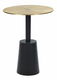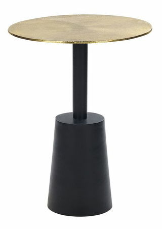 Příruční stolek s neobvyklou siluetou je doplňkem, který dokonale doplní všechny moderní interiéry. Je vyroben z kovu a jeho zaoblený podstavec doplňuje kulatá stolová deska zlaté barvy. I když působí velmi vzdušným a lehkým dojmem, je dostatečně stabilní. Je ideální jako odkládací stolek do obývacího pokoje nebo jako místo pro vystavení různých drobností a dekorací.