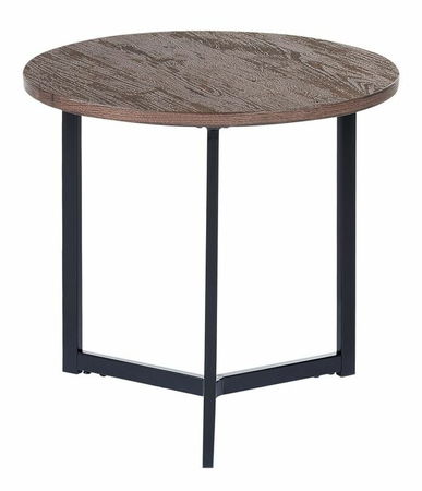 Tento malý odkládací stolek v industriálním stylu vnese moderní nádech do vašeho interiéru. Má kulatou stolovou desku v barvě tmavého dřeva a široký kovový podstavec v černé barvě. Díky své kompaktní velikosti si najde místo v jakémkoli prostoru. Chcete-li mít šálek čaje nebo oblíbenou knihu vždy po ruce, umístěte jej vedle pohovky nebo křesla.