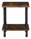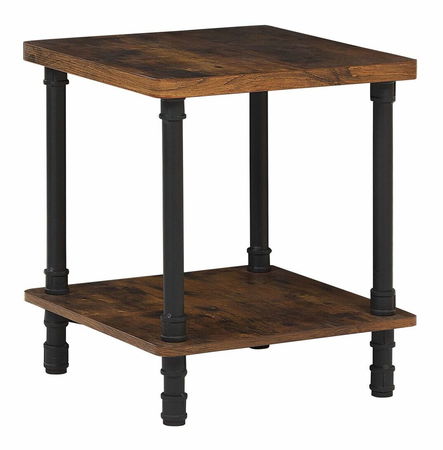 Vylepšete vzhled svého obývacího pokoje nebo ložnice s tímto odkládacím stolkem v industriálním stylu. Police umístěná ve spodní části stolu poskytuje dostatek úložného prostoru pro všechny předměty, které chcete mít vždy po ruce. Tmavé dřevěné prvky v kombinaci s černým kovovým rámem přitahují pozornost, díky čemuž se stolek hodí do jakéhokoli moderního prostoru.