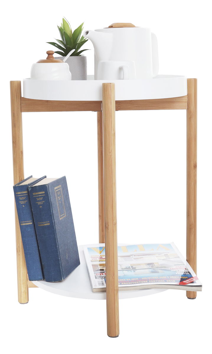 Príručný stolík Birdie Blye (bílá + přírodní bambus)