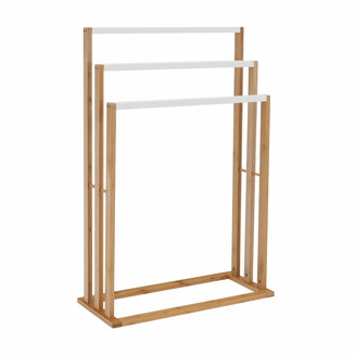 Stojan na ručníky Kelum (bílá + bambus)