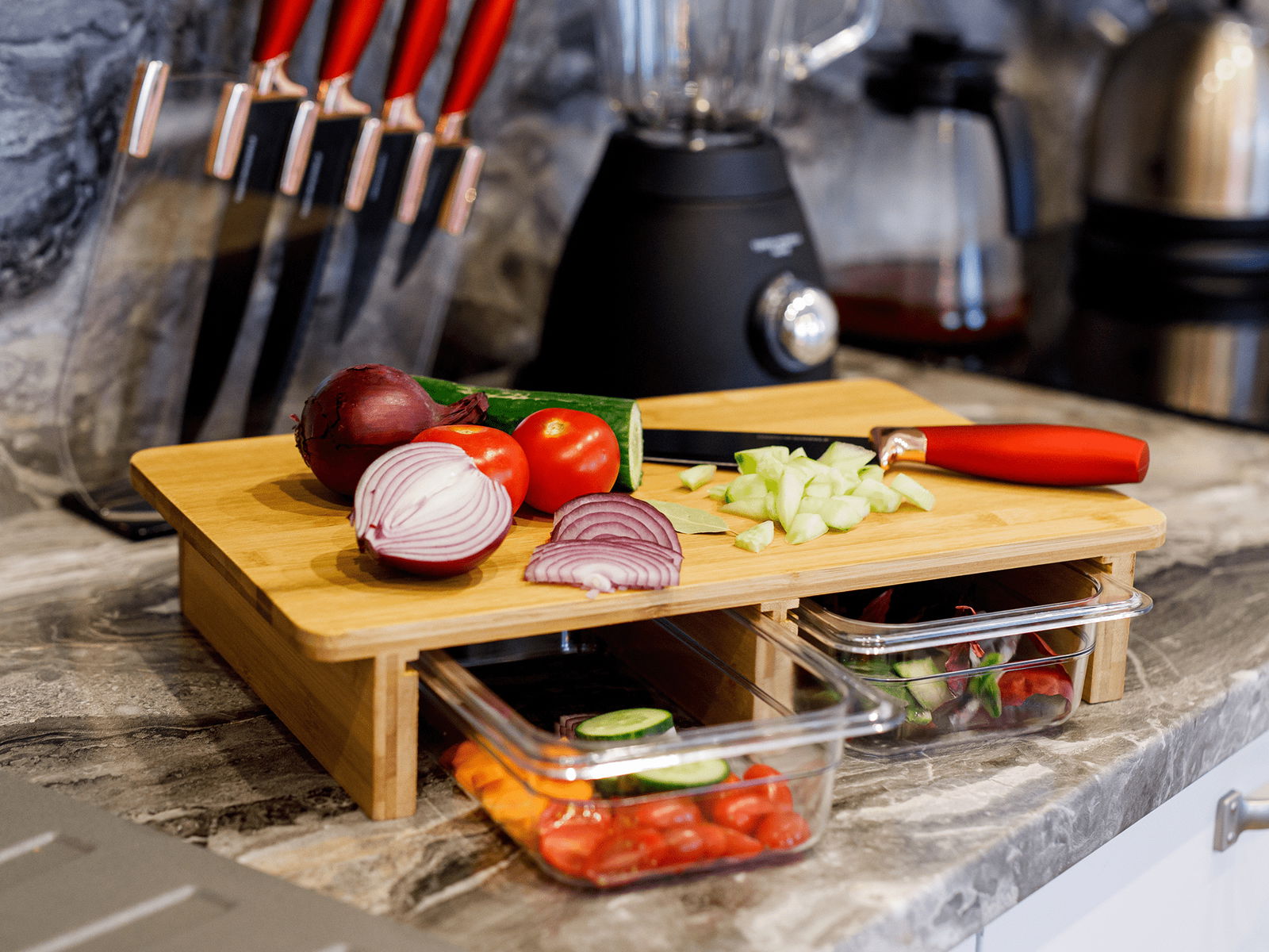 Prkénka na krájení se zásuvkami Tarosh 2 (bambus)