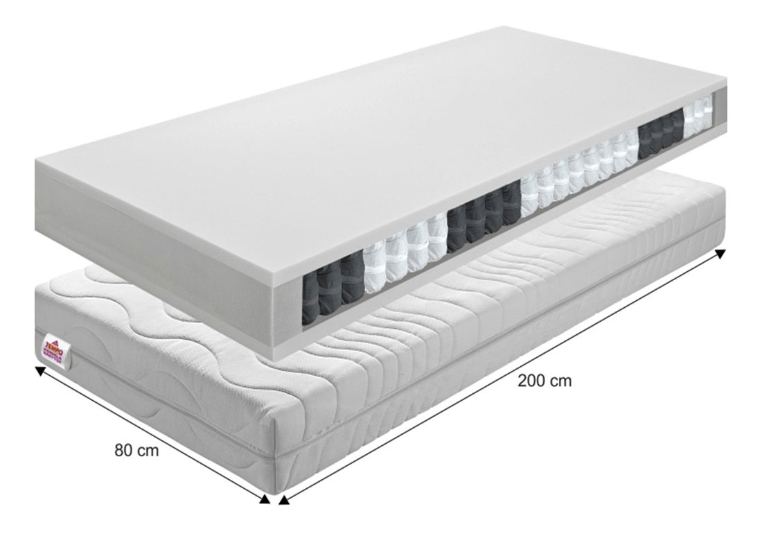 Principem tohoto typu matrace je jádro z taštičkových pružin, kde pružiny jsou z vysoce kvalitního drátu. Matrace s taštičkovou pružinou jsou špičkou mezi pružinovými matracemi. Každá pružina je uložena v ochranné taštičce, což zvyšuje elasticitu a přizpůsobivost matrace, kopírují efekt vodní postele. K vlastnostem, které má klasická Bonelové pružina, ta taštičková přidává lepší ortopedické schopnosti. Díky tomuto typu konstrukce se páteř uloží do přirozeného tvaru písmene S a vy budete spát mnohem pohodlnější a zdravější. Taštičkové pružiny jsou logickým výsledkem zdokonalování pružinového jádra, které je již dlouho osvědčenou kvalitou pro zdravý spánek. Pružinky jsou jemnější, ale jako celek jsou velmi odolné. Pružinové jádro je oboustranně obložené stlačenou plstí a polyuretanovou pěnou T25-25 mm se zvýšenou pružností. Matrace je lepený nejnovější technologií Hotmelt, při níž se používá tavné lepidlo zdravotně nezávadné. Polyuretanová pěna patří mezi základní materiály při výrobě matrací. Její vlastnosti se používáním mění. Při prvním použití vyniká tuhostí, která se používáním mění k příjemnějšímu komfortu při ležení. Je vyráběna z kvalitních surovin a materiálů, bezpečnou technologií nepůsobící ozónovou vrstvu. Je to zdravotně nezávadný materiál, který se běžně používá v dětských postýlkách, v nemocnicích a také v našich matracích.