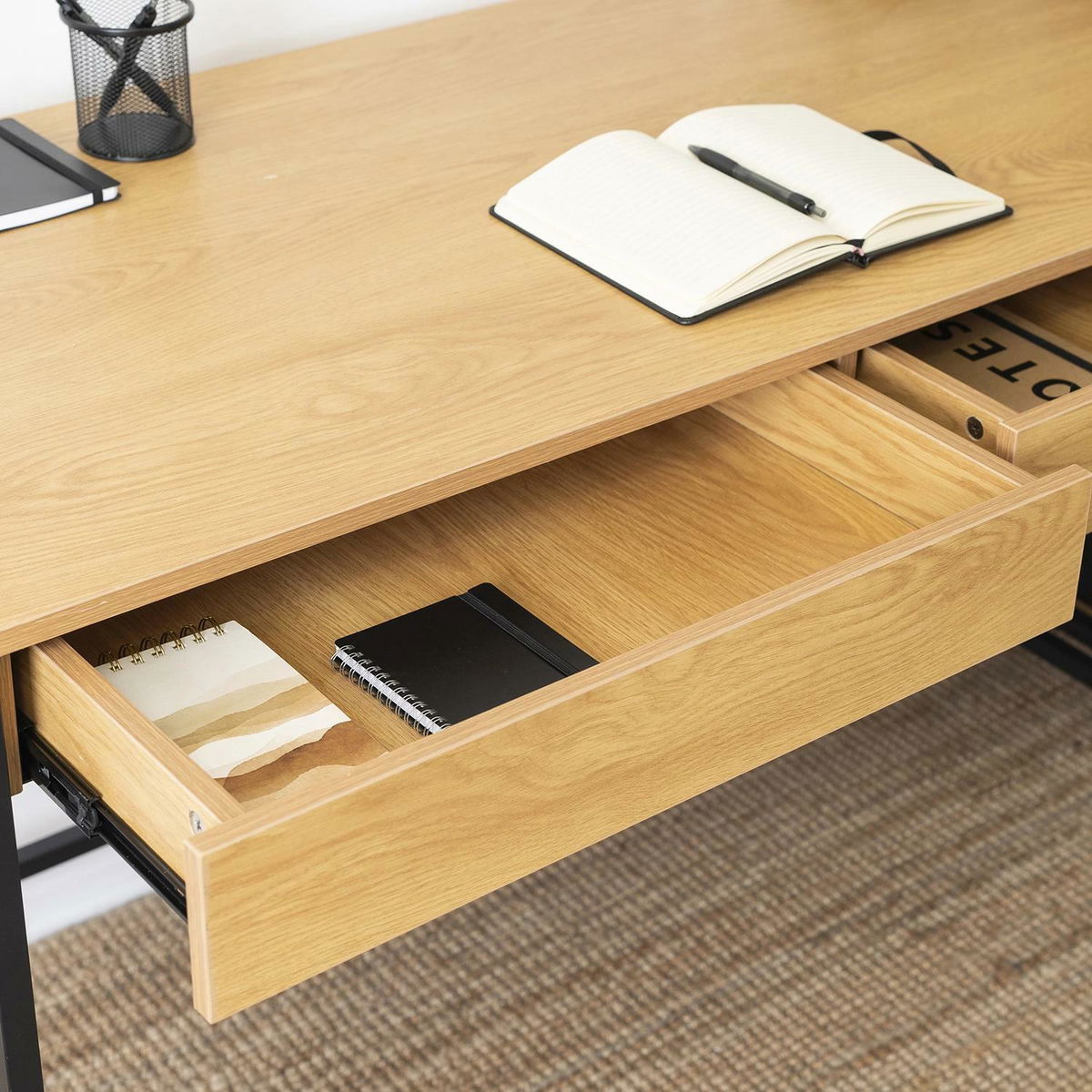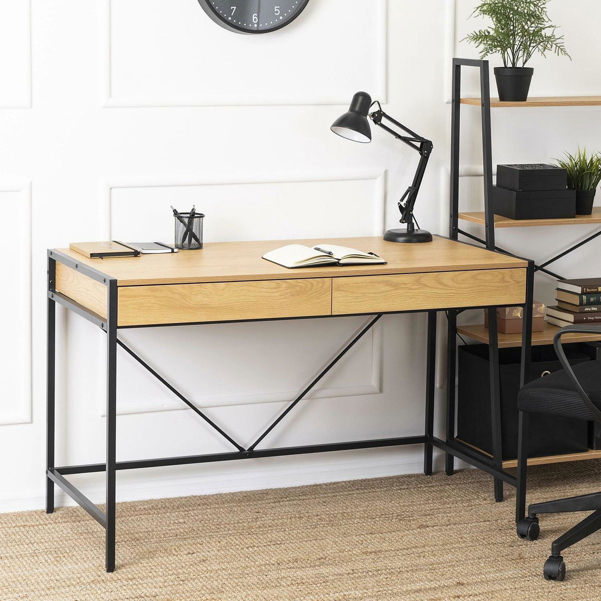 Psací stolek Azisa (dub zlatý + černá)