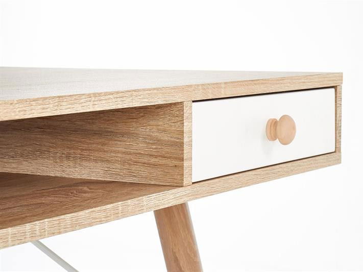 ZobrazitPsací stolek Bernie (světlé dřevo + bílá) je výbornou volbou pro každého, kdo hledá praktické a elegantní řešení pro svoji pracovnu nebo kancelář. Stolek je vyroben z laminované MDF desky a práškově lakované oceli, což zaručuje jeho kvalitu a odolnost. Jeho světlý odstín dřeva a bílá barva jsou výborně kombinovány a vytvářejí moderní a vkusný vzhled. Výška stolku je 75 cm a hloubka 60 cm, což zajišťuje dostatek prostoru pro práci. Stolek je vybaven praktickou rukojetí a je balen do pěti balíků o různých rozměrech. Psací stolek Bernie je skvělou investicí pro každého, kdo hledá kvalitní a elegantní pracovní stůl.