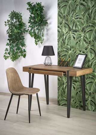 Psací stolek Bernie v tmavém dřevě s černou barvou je ideálním doplňkem pro váš domácí kancelářský koutek. Stolek má výšku 76 cm a hloubku 55 cm. Materiál, ze kterého je vyroben, je laminovaná MDF deska a ocel s práškovým nástřikem. Stolek je vybaven praktickou rukojetí, která usnadňuje jeho přesouvání. Rozměry balíku 1 jsou 122x63x14 cm o hmotnosti 19,7 kg. Další rozměry balíků nejsou uvedeny. Tento psací stolek je skvělou volbou pro ty, kteří hledají funkční a elegantní nábytek pro svůj kancelář nebo studentský pokoj.