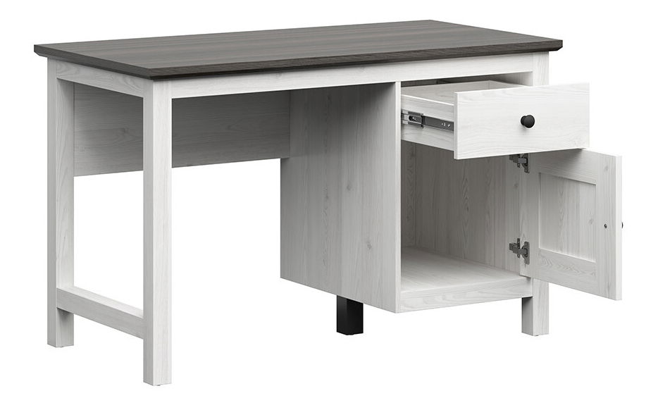 Psací stůl o rozměrech 120 x 60 cm je optimálním prostorem pro umístění lampy, notebooku a nezbytných pomůcek pro práci nebo studium. Nábytek je vybaven mechanismem pro plynulé a tiché zavírání front a zásuvek, což je výhodou při každodenním, intenzivním používání. Při používání stolu nebudete narušovat rytmus a nebudete rozptylovat domácnost. Kromě toho zásuvka má vedení, která umožňují úplné vysunutí, což se hodí při častém otevírání. Díky tomuto řešení snadno dosáhnete do všech jejích zákoutí. Pohodlné úchytky ve tvaru knoflíku a jemné frézy na frontách dodávají stolu soudržnost a jemnost. Psací stůl Hesen se dokonale hodí do interiéru ve skandinávském nebo eklektickém stylu.