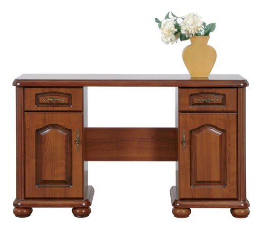 Toaletní stolek v krásném rustikálním designu bude ozdobou každé ložnice nebo obývacího pokoje. Na levé i pravé straně se nachází zásuvka a dvířka, které jsou vyřezávané. Dvířka a zásuvky mají ozdobné úchyty. Stolek stojí na kulatých a hrubých nožičkách.