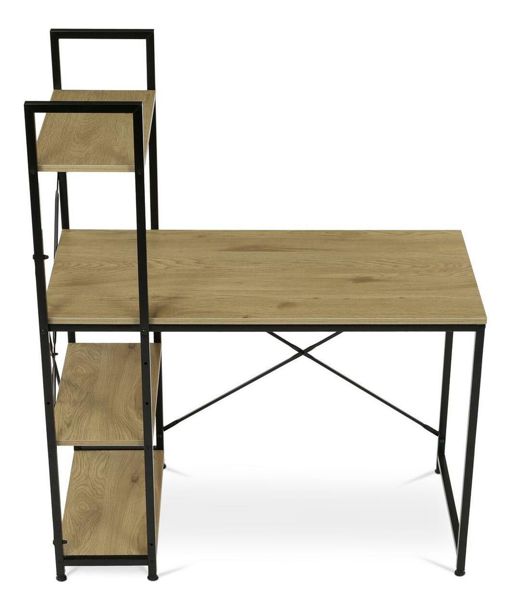 ZobrazitPracovní stůl v industriálním stylu je skvělou volbou pro moderní kanceláře i domácí pracovny. Kombinace hnědého dekoru dubu a černé kovové konstrukce vytváří atraktivní a odolný design. Stůl nabízí praktický úložný prostor díky čtyřem přídavným policím, které poskytují dostatek místa pro knihy, dokumenty nebo dekorace. Matná povrchová úprava desky z MDF zajistí snadnou údržbu a elegantní vzhled. Tento funkční a stylový kus nábytku se skvěle hodí do interiéru, kde oceníte praktičnost a moderní vzhled.