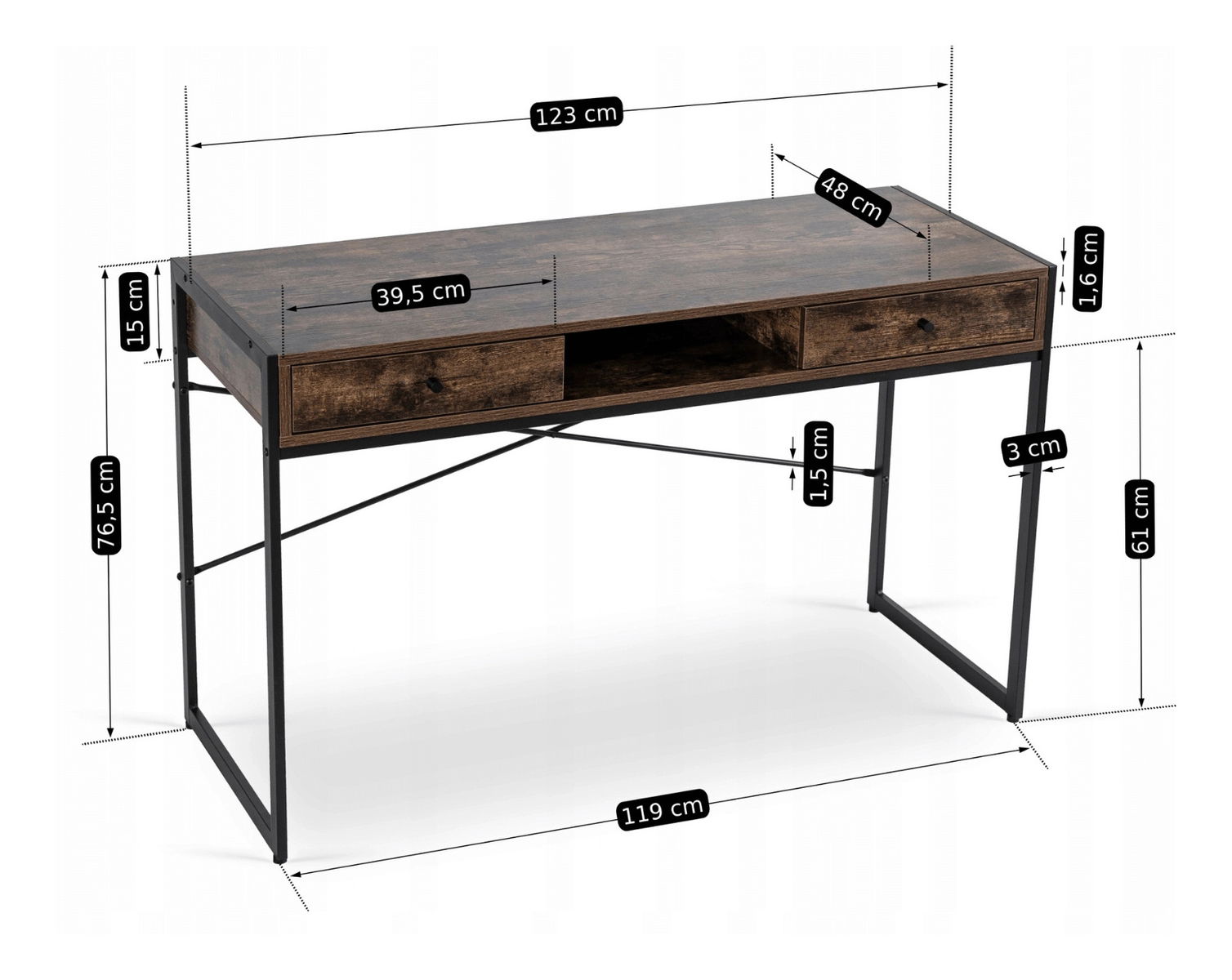 Psací stolek Supuso (hnědá + černá)