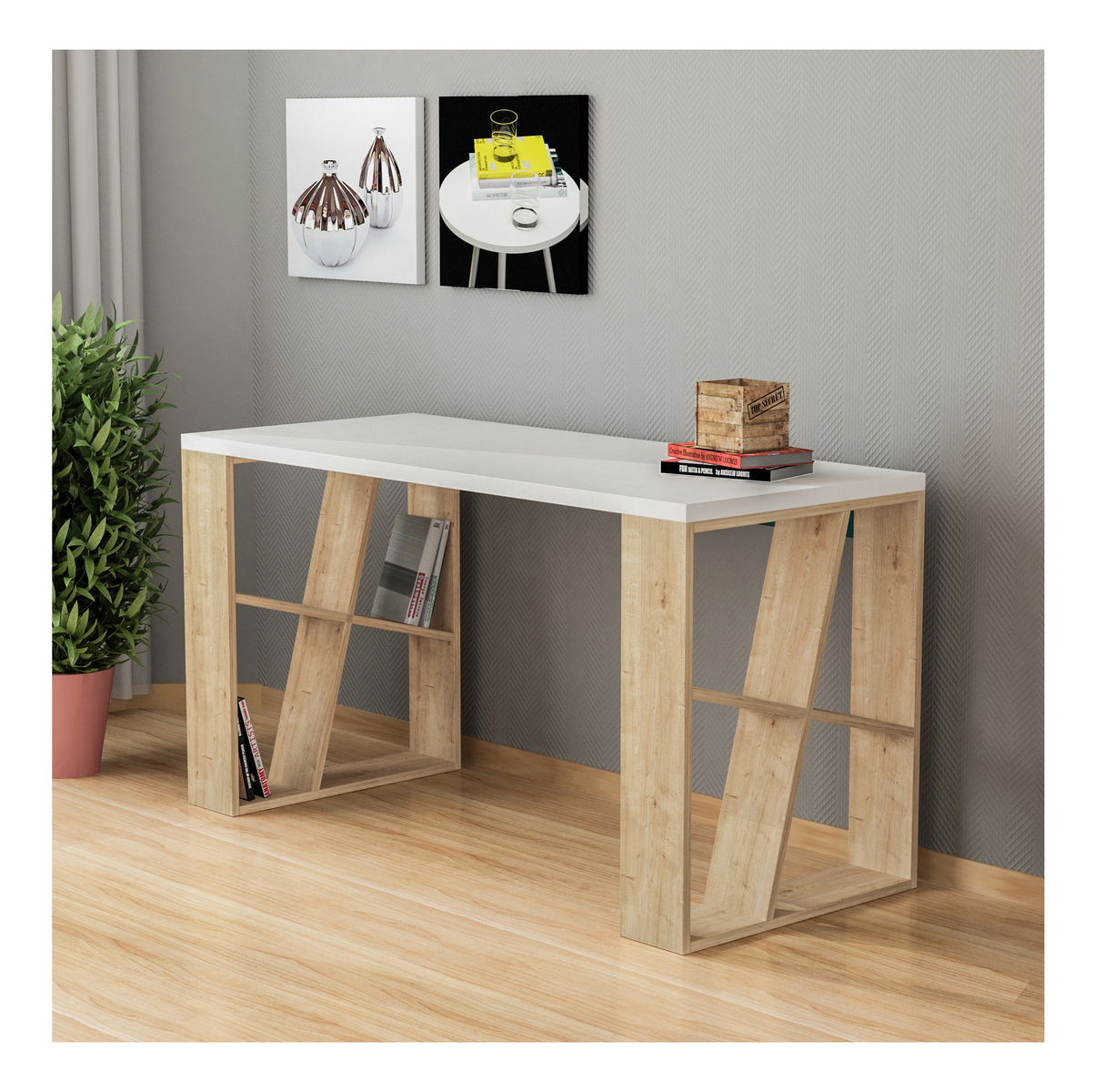 ZobrazitPsací stůl - Heliodor je moderní a praktický nábytek pro váš domov nebo kancelář. S výškou 75 cm, šířkou 140 cm a hloubkou 60 cm poskytuje dostatek prostoru pro pohodlné psaní a práci na počítači. Jeho bílá a dubová barva dodává stolu elegantní a stylový vzhled, který se hodí do jakéhokoli interiéru. S více úložnými prostory, jako jsou zásuvky a poličky, poskytuje Heliodor dost místa na uspořádání všech vašich potřeb a pomůže udržet pracovní prostor uklizený a organizovaný. S tímto psacím stolem budete mít ideální pracovní prostředí, které vám pomůže dosahovat svých cílů a být produktivní.