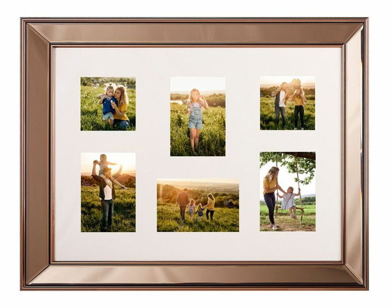 Zarámujte si oblíbené vzpomínky do tohoto stylového rámu na fotografie se zrcadlovým efektem v elegantní měděné barvě. Do fotorámečku můžete vložit až 6 fotografií a vytvořit koláž rodinných fotografií. Zavěste jej na stěnu v obývacím pokoji, ložnici nebo předsíni nebo jej zkombinujte s jinými doplňky a dekoracemi.