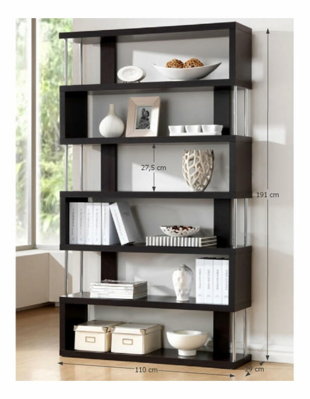 Regál Aboyne FP 6D (černá) výška 191 cm hloubka 29 cm Černá Popis: Potřebujete přehledný odkládací prostor s moderním designem, který dokonale doplní váš stylový interiér? Víceúčelový regál Aboyne je tou správnou volbou pro vás. Jeho hlavními výhodami jsou zajímavý design a spousta úložného prostoru. Materiál DTD laminovaný s chromovými doplňky dodává vašemu domovu pocit čistoty a harmonie. S tloušťkou materiálu 36 mm je regál stabilní a spolehlivý. Regál je vhodný i do prostoru, jelikož je ošetřen paskou ze zadní strany. Obohaťte prázdná místa vašeho domova praktickým a nadčasovým nábytkem. Technický popis: Materiál: laminovaná DTD/chrom, Barva: černá, Rozměry (ŠxHxV): 110x29x19 cm, Tloušťka materiálu: 36 mm, Nosnost na polici: 10 kg, Hrany ošetřeny páskou z přední i zadní strany, Dodáváno v demontu.