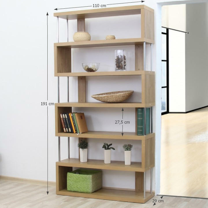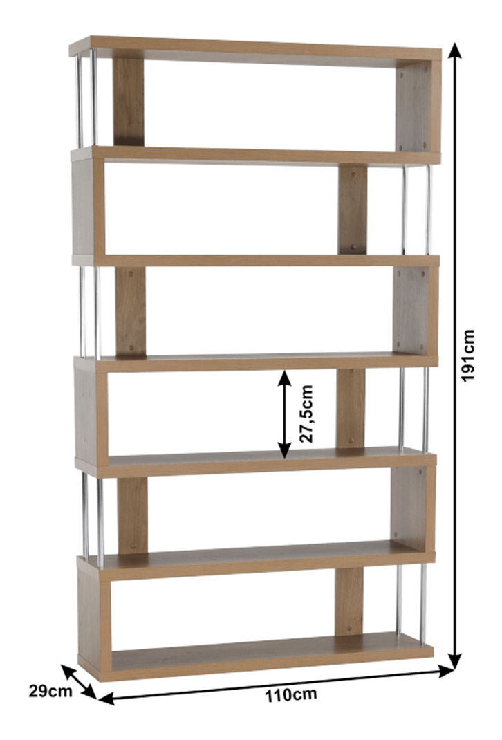 Regál Aboyne FP 6D (dub) o výšce 191 cm a hloubce 29 cm je dokonalým doplňkem pro moderní domácnosti, které potřebují efektivní a přehledný odkládací prostor. Jeho zajímavý design a množství prostoru jsou jeho hlavní vlastnosti. odolný, chrom dodává vašemu pokoji nádech čistoty a harmonie. tloušťku 36 mm, což zaručuje stabilitu a spolehlivost. Regál má nosnost poliček až 5 kg a je vhodný i do prostoru, protože je ošetřen páskou i ze zadní strany. místa vašeho domova praktickým a nadčasovým nábytkem a užijte si útulný a přehledný interiér.