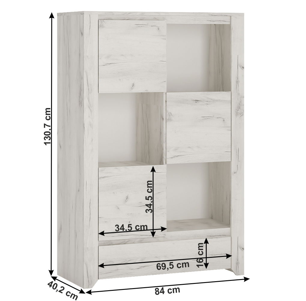 Regál Adamus Typ 31 3D1S o výšce 130,7 cm a hloubce 40,2 cm je zajímavý regál se třemi otevřenými poličkami a třemi dvířky. Tento sektorový nábytek Adamus se vyznačuje svěžím a moderním bezúchytovým systémem a univerzálním barevným provedením – bílý korpus a dvířka v barvě craft. Regál je vyroben z kvalitní laminované DTD, která zajišťuje jeho trvanlivost a odolnost. Tento nábytek je ideální pro zařízení dětských a studentských pokojů. Regál se dodává v demontu, ale jeho sestavení je snadné a rychlé. S výškou spodního prostoru 2,5 cm od podlahy vám tento regál umožní využít prostor pod ním pro ukládání dalších věcí. S Regálem Adamus Typ 31 3D1S získáte nejen praktický nábytek, ale také moderní prvek pro váš interiér.
