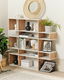 tímto moderním regálem konečně naleznete místo pro všechny drobnosti. Díky pěti otevřeným policím poskytuje dostatek prostoru pro knihy, dekorativní předměty a podobně. Preferujete-li uzavřený úložný prostor, regál lze jednoduše doplnit úložnými košíky. Díky asymetrickému rámu a různým velikostem polic je snadno přístupný a má stylový vzhled, který vylepší každé moderní zařízení.