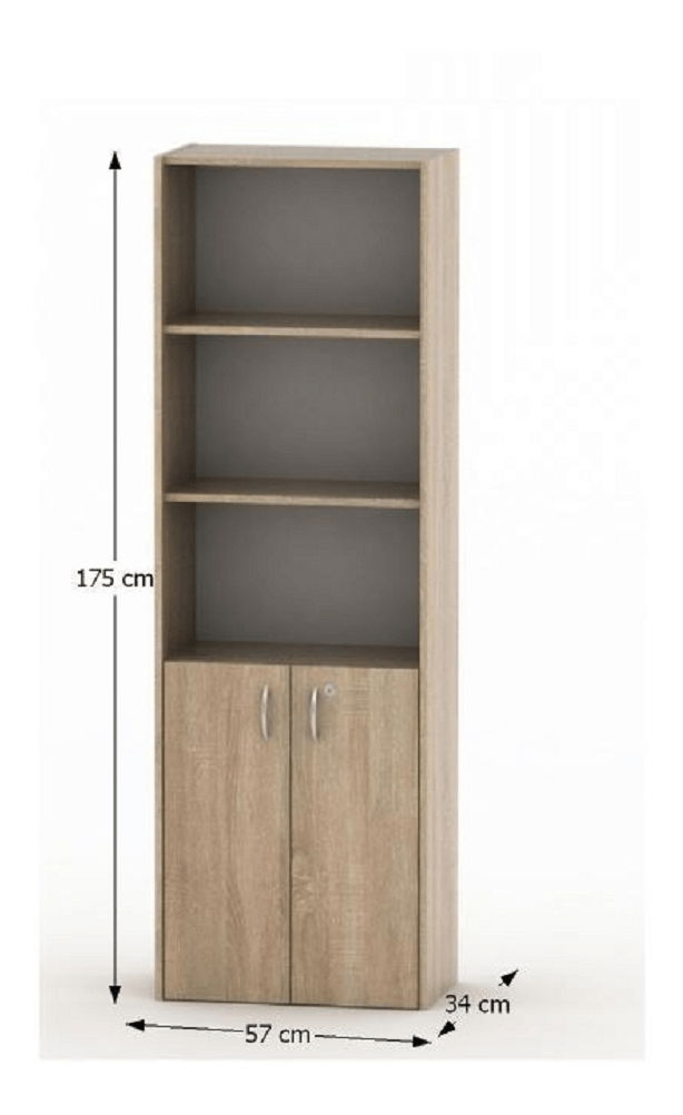 ZobrazitRegál Asista AS 002 dub Sonoma vysoký, o výšce 175 cm a hloubce 34 cm, je ideální pro skladování věcí v různých místnostech. Regál má dvě poličky v horní části a dvířka s možností uzamčení ve spodní části, které skrývají prostor s jednou poličkou. Regál je vyroben z DTD laminovaného materiálu s ABS hranami. Je k dispozici v barevných provedeních buk, dub Sonoma, Bardolino tmavé a třešeň. Tento regál je součástí sektorové sestavy Asista, která je vhodná pro zařízení kanceláří, pracovní, školních učeben nebo zasedacích místností. Regál Asista AS 002 je dodáván v demontu, s materiálovou tloušťkou 16 mm.