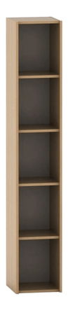 Úzký policový regál má využití pro menší kanceláře s nedostatkem prostoru. Regál disponuje pěti odkládacími prostory, které od sebe oddělují čtyři police. Barevné provedení buk.