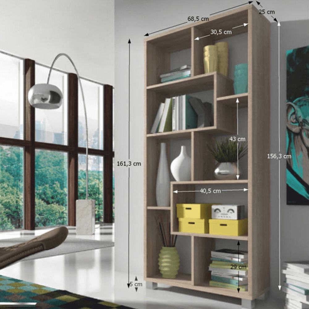 Mnohoúčelový regál Aden vás zaujme zajímavě řešenými poličkami. Zároveň ho můžete umístit i do horizontální polohy. Bude pěkným estetickým doplňkem ve vašem obýváku, pracovně nebo ložnici. Nabízíme ho v pěkném barevném provedení dub sonoma.