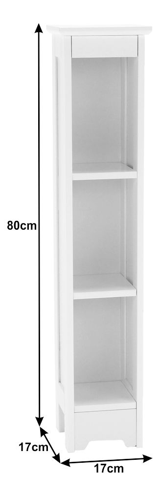 Regál Athea v bílé barvě o výšce 80,5 cm a hloubce 17 cm je úzký a otevřený regál, který je součástí koupelny Athea. Regál je vyroben z MDF materiálu o tloušťce 12 mm. Jeho barevné provedení je bílá a rozměry regálu jsou 17x17x80,5 cm. Regál je dodáván v demontu, což zajišťuje jednoduchou montáž a dismontáž. Regál Athea je ideálním řešením pro ty, kdo hledají praktické řešení pro úložné prostory v koupelně.