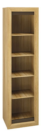 Stylový regál se čtyřmi policemi v barvě amerického dubu přináší svěžest do každého interiéru, takže je určen pro osoby které ocení eleganci, přirozenost a jednoduchost. Uvnitř skříně se nacházejí čtyři police. Dodává se v demontu.