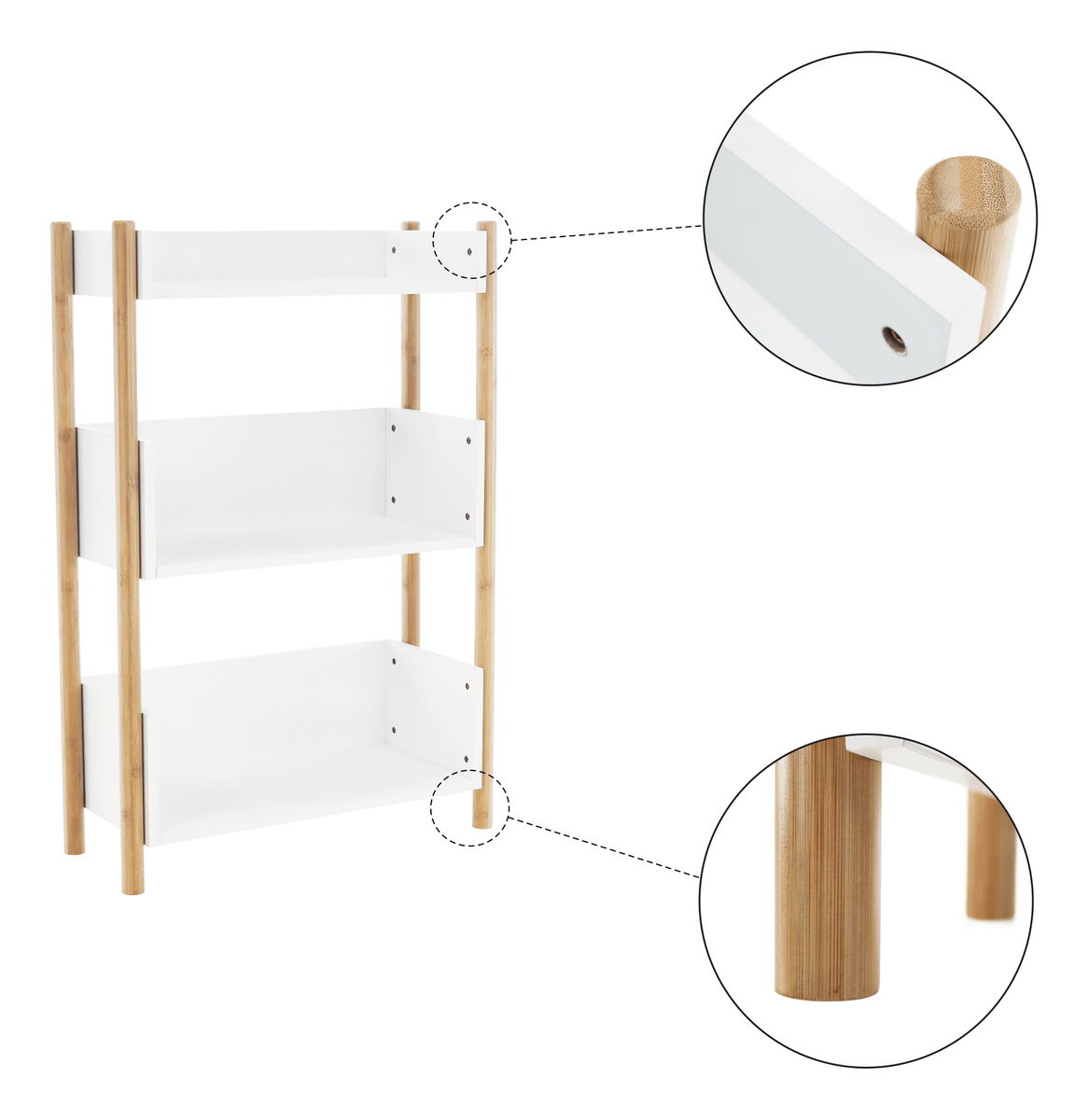 Uspořádaný a praktický domů? S regálem Barilla rozhodně! 3-poličkový regál Barilla můžete využít kdekoliv ve vaší domácnosti. Regál je vyroben z MDF a lakovaného bambusu v bílém provedení.