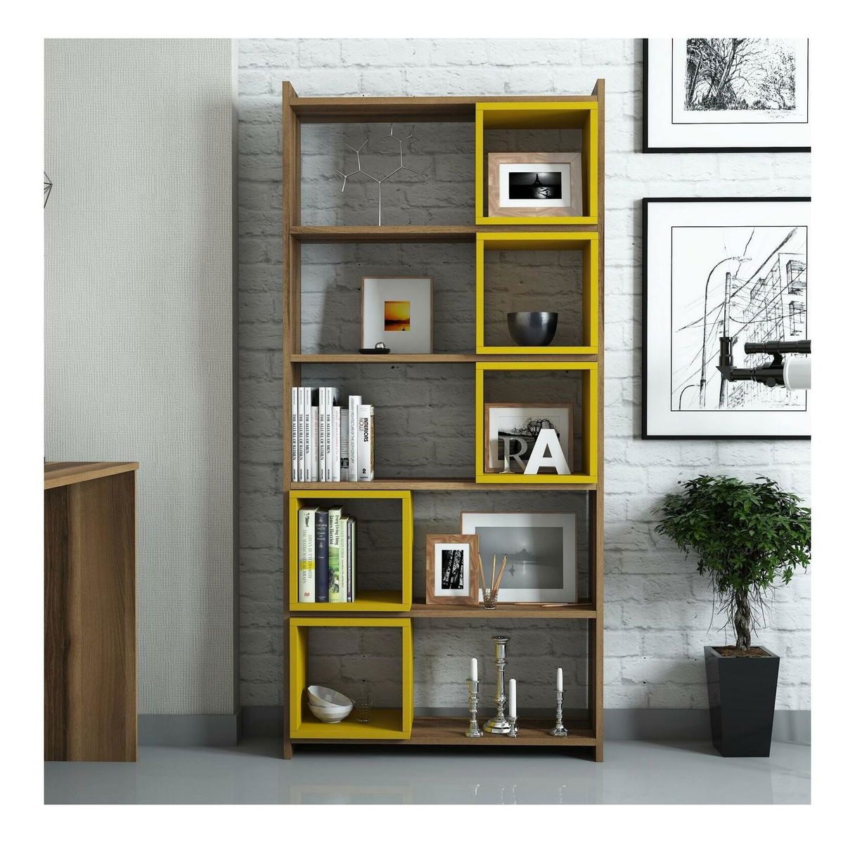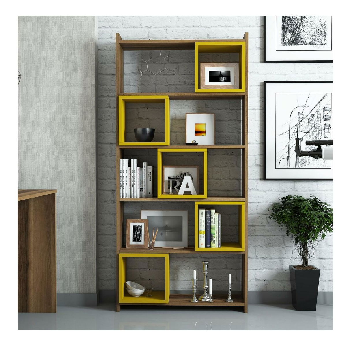 Regál Blanchet (ořech + žlutá)