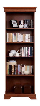 Klasický vysoký regál s ornamenty s pěti vysokými policemi. Krátké masivní nožičky