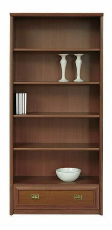 Krásný regál decentního vzhledu se čtyřmi poličkami pro vaše knihy, ozdobné předměty nebo vaše doplňky. Regál má ve spodní části i praktickou zásuvku. Zásuvka má dva kovové úchyty.