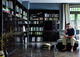 Rozkládací jídelní stůl Granger (lesk černý + beton) (pro 2-6 osob)