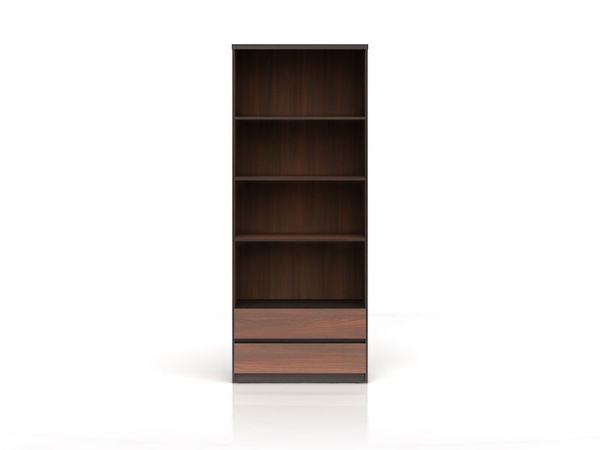 Regál s širšími policemi a dvěma zásuvkami ve spodní části. Ideální pro kolekce knih, dekorativní předměty, porcelán nebo sklo. Do obývacích pokojů nebo pracoven velmi jednoduše přinesete eleganci a styl. Spodní zásuvky nemají úchyty.