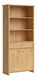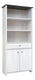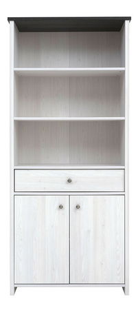 Široký regál se třemi otevřenými poličkami, zásuvkou a dvěma dvířky ve spodní části. Zaujme vás zejména svým pěkným designem, který kombinuje prvky francouzského stylu a moderního stylu. Na zásuvce a dvířkách jsou drobné kulaté úchyty.