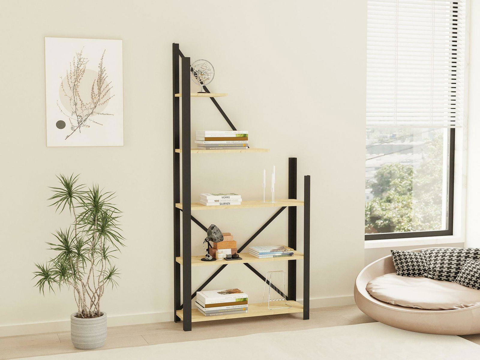 Regál Davuba 1 (dub safírový + černá)