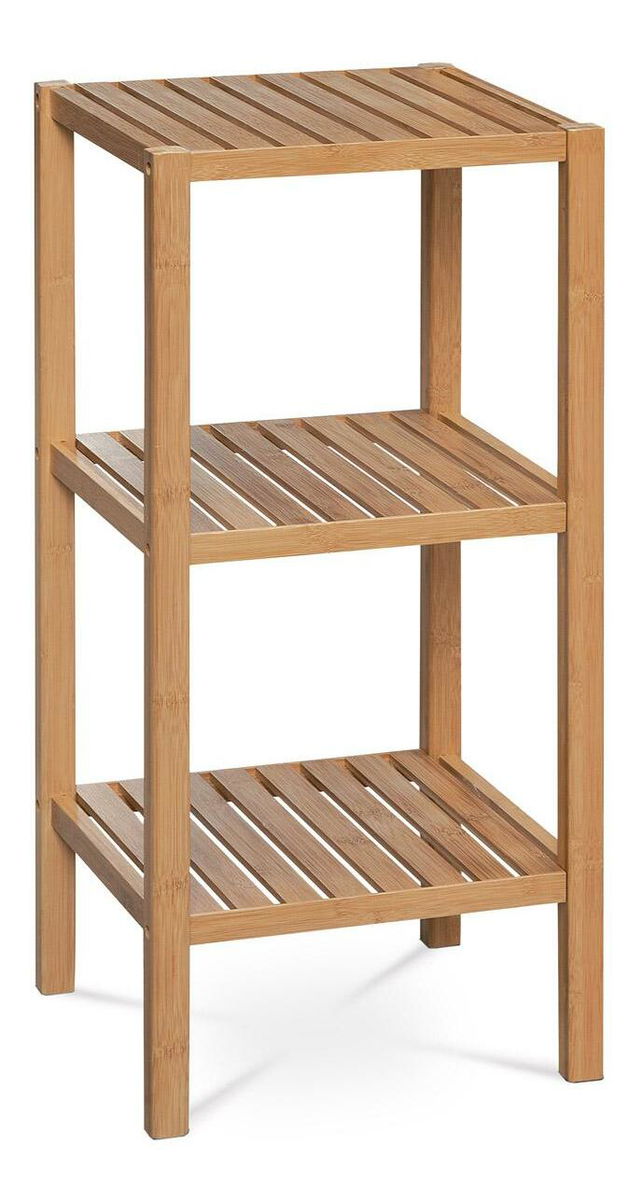 Multifunkční tříipolicový regál. Nosná konstrukce a police jsou vyrobeny z masivního bambusu, lakovaného kvalitním transparentním lakem. Bambus jako takový opuzuje vodu a touto povrchovou úpravou dosahuje velmi dobré voděodolnosti. Zpracováním a použitým materiálem je regál vhodný do koupelen, ale ideální bude iv ostatních místech domácnosti. Police jsou pevné roštové, případná vylitá voda bez problémů odteče. Jejich nosnost je až 3 kg, celková 9 kg. Rozteč polic je 29 cm. Ať už regál využijete pro uložení kosmetiky, ručníků a osušek nebo jako stojan na květiny či dekorace, vždy s ním budete spokojeni. Záleží jen na vašich nápadech.