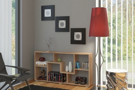 ZobrazitEfektivní řešení úložného prostoru v obývacím pokoji poskytuje široký regál Domino B. Zároveň si ním velmi pěkně zmodernizujete prostor obývacího pokoje, ložnice nebo pracovny. Barevné provedení regálu Domino B je dub sonoma světlý.
