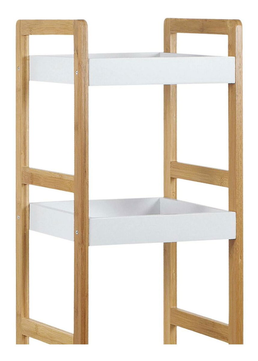 Multifunkční pětipolicový regál ve Skandinávském stylu. Nosná konstrukce je vyrobena z masivního bambusu, lakovaného kvalitním transparentním lakem. Bambus jako takový opuzuje vodu a touto povrchovou úpravou dosahuje velmi dobré voděodolnosti. Police jsou vyrobeny z MDF desek a lakovány kvalitním polyuretanovým bílým matným lakem. Čím iu nich je zaručena voděodolnost. Tímto zpracováním je regál vhodný do koupelen, ale ideální bude i v ostatních místech domácnosti. Horní dvě police mají boky ze všech stran, ostatní tři jsou klasické rovné. Jejich nosnost je až 3 kg, celková 15 kg. Ať už regál využijete pro uložení kosmetiky, ručníků a osušek nebo jako stojan na květiny či dekorace, vždy s ním budete spokojeni. Záleží jen na vašich nápadech.