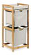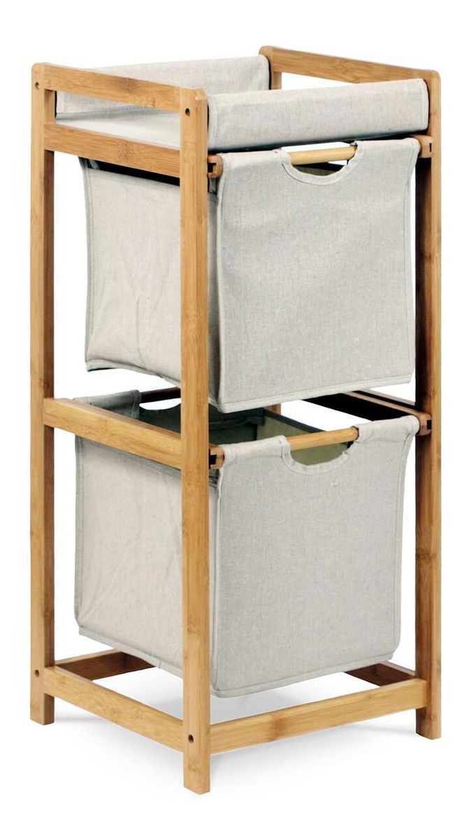 Multifunkční regál se dvěma zásuvkami/boxy. Nosná konstrukce je vyrobena z masivního bambusu, lakovaného kvalitním transparentním lakem. Bambus jako takový opuzuje vodu a touto povrchovou úpravou dosahuje velmi dobré voděodolnosti. Výsuvné boxy jsou vyrobeny ze středně silné látky v šedém odstínu se závěsným rámem z bambusu. Regál vhodný do koupelen, ale také do síní či místností, kde upotřebíte úložné prostory. Látkové boxy jsou prodyšné, jejich nosnost je až 3 kg, celková 6 kg. Ideální regál k plné spokojenosti využijete pro uložení ručníků, osušek nebo i části oblečení, popř. dalších věcí, podle potřeby.