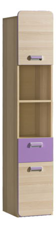 Sektorová sestava svým designem vhodná do dětských a studentských pokojů. Veselá kombinace světlé barvy dřeva jasan je kombinovaná fialovou nebo zelenou barvou a rozjasní každý prostor. V sektoru se nachází množství prvků, ze kterých si hravě poskládáte pokoj podle Vašich představ. Materiál použitý na výrobu je laminovaná DTD. Hrany jsou ukončeny ABS úpravou, která zvyšuje odolnost vůči mechanickému poškození, udržuje barevnou stálost a odolnost proti vlhkosti.