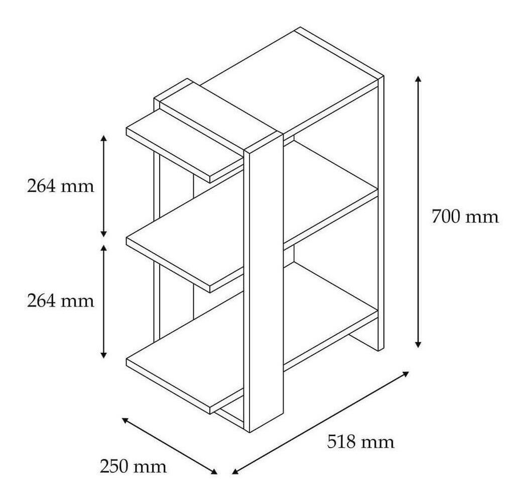 tloušťka: 18 mm, šířka: 51,8 cm, výška: 70 cm, hloubka: 25 cm, výška police: 26,4 cm