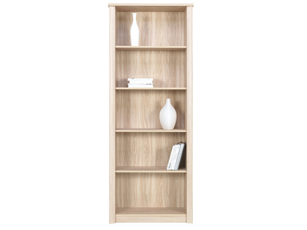 Praktický regál, který můžete využít k odkládání dekoračních předmětů, nebo i jako knihovnu. Postarají se o to čtyři dřevěné poličky. Po krajích regálu je ozdobná lišta, která dodává nábytku eleganci.